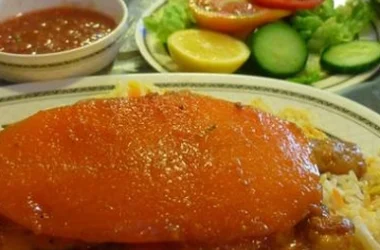- تُخبز الصينية في فرن على درجة حرارة 180 درجة مئوية لمدة خمس وأربعين دقيقة حتى تتشرب الصلصة.