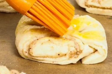 - إغلاق أطراف العجينة لتغطية الحشوة تماماً، ودهن وجهها بصفار البيض المخفوق لخبزها حتى تنضج في الفرن.