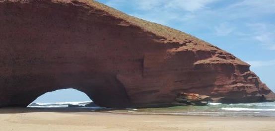 يُطلّ شاطئ الجزيرة على المحيط الأطلسي ويُعتبر واحداً من أجمل شواطئ المغرب. يتميز بوجود تكوين صخري ضخم على شكل قوس، نتيجة لعمل العوامل الطبيعية. يُوفّر شاطئ الجزيرة للزوّار فرصة رائعة لرؤية هذا المعلم الصخري ومناظر المياه الخلابة.