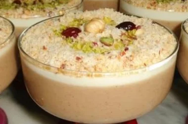 - اسكب المهلبية في كؤوس فردية للتقديم، واتركها حتى تبرد قليلاً قبل وضعها في الثلاجة.