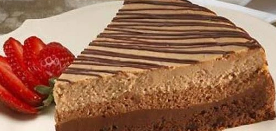 - وزّع ثلثي كمية خليط الشوكولاتة في القالب، ثم ضع فوقها طبقة من البسكويت المغمس بالقهوة.