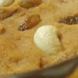 9. قبل التقديم، يُزين حلى الحليب بالصنوبر والفستق، ويُقدم مع العسل أو القطر.