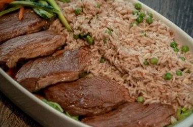 - يخرج الطبق من الثلاجة، وينثر شرائح اللوز المحمص على وجه الطبق عند التقديم.