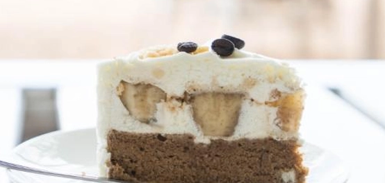 - يوضع قالب كيك الموز في الثلاجة لعدة ساعات حتى تتجمد طبقة التوفي والكريمة قبل التقديم.