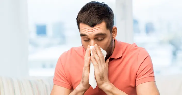 - التهاب الأنف: يشمل سيلان الأنف والعطس والاحتقان.