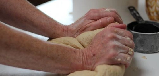- إضافة باقي الطحين تدريجياً حتى تتشكل عجينة لينة.
