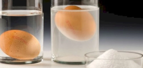 ستلاحظ أن البيضة في الكأس الذي يحتوي على الماء المالح تطفو، بينما البيضة في الكأس الذي يحتوي على الماء العادي تغرق. والسبب في ذلك يرجع إلى أن الماء المالح أكثر كثافة من الماء العادي، مما يجعله قادراً على حمل البيضة وجعلها تطفو.