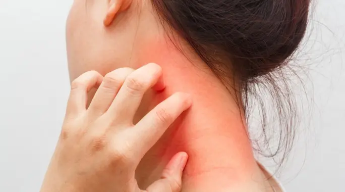- ظهور بثور أو حبوب حمراء مؤلمة في منطقة الرقبة.