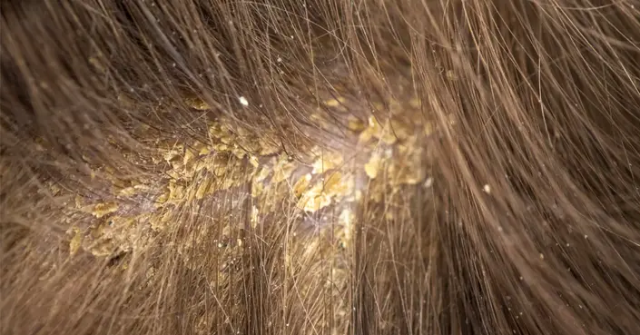 تُعد قشرة الرأس من أكثر الأعراض شيوعًا، وتظهر على فروة الرأس بقشور بيضاء أو صفراء دهنية. عند الرضع، تُعرف هذه القشور أحيانًا باسم “قبعة المهد” وتتميز بلونها الأصفر ودهنيتها.
