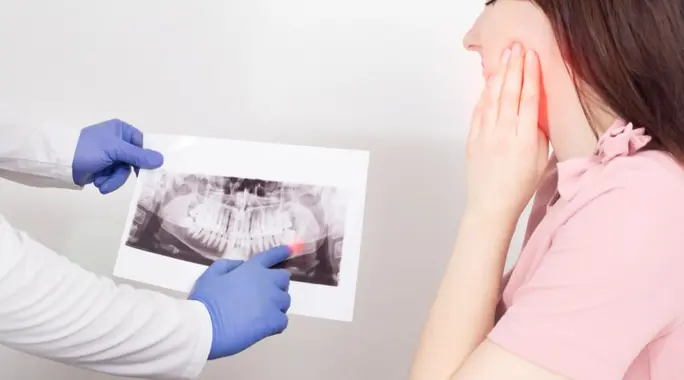 - ألم مستمر في الفك قد يمتد إلى الأذن.