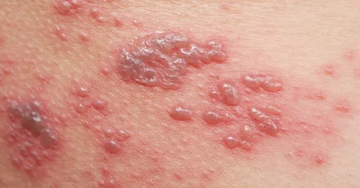 - طفح جلدي: ظهور بقع حمراء تتحول سريعًا إلى بثور مملوءة بالسوائل. غالبًا ما تظهر هذه البثور على جانب واحد من الجسم أو الوجه، على طول مسار عصب معين.