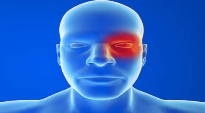- تورم العين في جهة الصداع، مع صغر في الحدقة واحمرار في الملتحمة.