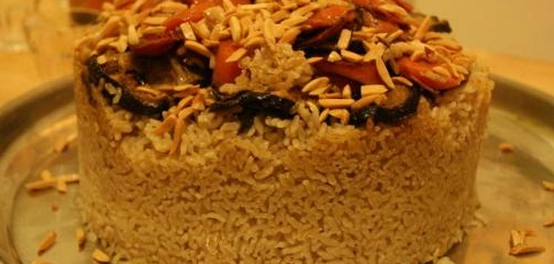 13. اقلبي المقلوبة في صينية تقديم كبيرة، وزينيها بالمكسرات المقلية أو البقدونس المفروم حسب الرغبة.