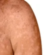 • ظهور بقع بلون أبيض، وردي، أو بني فاتح على الجزء العلوي من الجسم، خاصة الجذع والرقبة والكتفين.