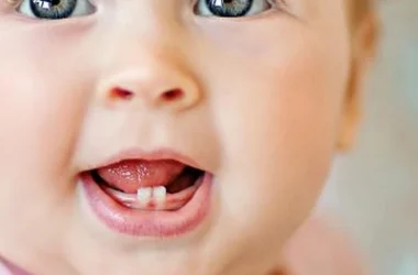 يبدأ معظم الأطفال بالتسنين بين الشهر السادس والثاني عشر. قد يُسبب خروج الأسنان من اللثة ألماً، وبالتالي بكاءً وتهيجاً. قد يصاحب التسنين ارتفاعاً طفيفاً في درجة الحرارة، لكن الحمّى المرتفعة تستدعي زيارة الطبيب.