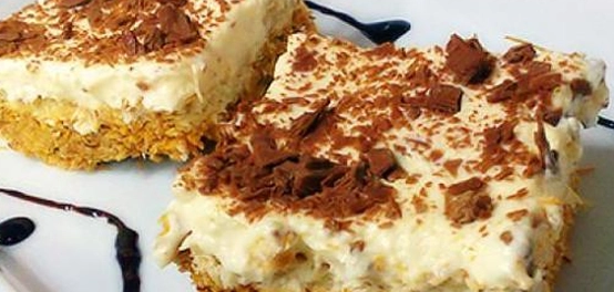 - نضع الصينية في الثلاجة ونتركها حتى تبرد وتتماسك الطبقة الثانية تماماً.