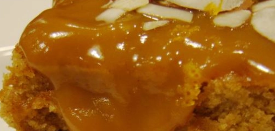 أخرج الكنافة من الفرن واقلبها على طبق التقديم. وزع القطر الساخن بالتساوي على الكنافة.