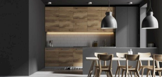 تُضفي الجدران الخشبية لمسة دفء وحميمية على المطبخ. اختيار اللون المناسب للخشب يُعزز جمالية المطبخ ويُساهم في تقليل الضوضاء.