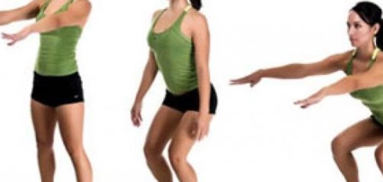• القرفصاء مع الأوزان: احمل ثقلًا في يديك الاثنتين، ومدّهما أمامك، ثم اثنِ ركبتيك مع أخذ وضعية الجلوس، ثم قف.