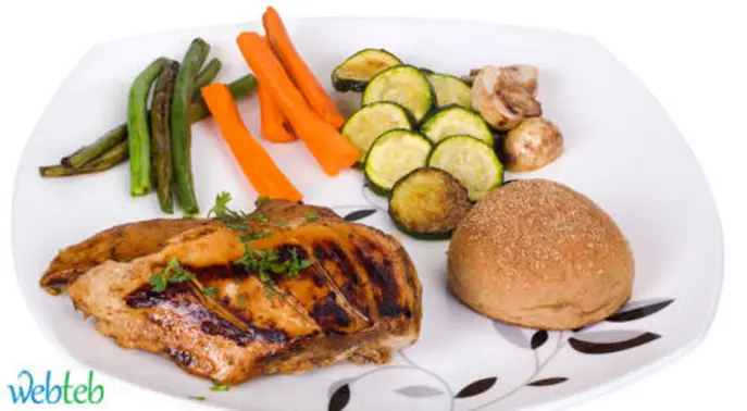 - ابدأ ببروتينك وخضراواتك: تناول مصدر البروتين (مثل الدجاج، السمك، البيض، البقوليات) والخضراوات الورقية أو غير النشوية أولاً.
