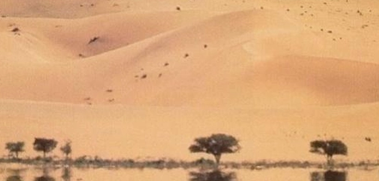 • السراب الصحراوي: يحدث في الصحراء نتيجة لارتفاع درجة الحرارة الشديدة، مما يؤدي إلى تسخين الرمال وخلق طبقة من الهواء الساخن بالقرب من السطح. هذا يخلق وهمًا بوجود سطح مائي يعكس صور الأجسام البعيدة.