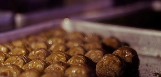 - صفّوا الحبات من القطر، ورشّوها بالفستق الحلبي المطحون. قدموها باردة واستمتعوا بمذاقها الشهي.