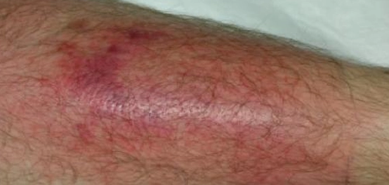 - طفح جلدي أحمر، خاصةً أسفل الركبتين