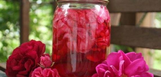 4. ضع بتلات الورد المهروسة في الماء واتركها لتُطلق العطر والزيوت.