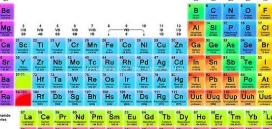 يوضح الجدول التالي رموز العناصر الكيميائية الهامة: