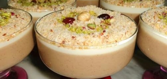 - اترك الخليط يغلي على نار هادئة لبضع دقائق، ثم اسكبه في أطباق التقديم، وزينه بالهيل والزعفران.