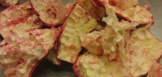 - مسحوق قشر الرمان: يتم تجفيف قشور الرمان وطحنها لتصبح مسحوقاً ناعماً، ثم استخدامها في الوصفات المختلفة.