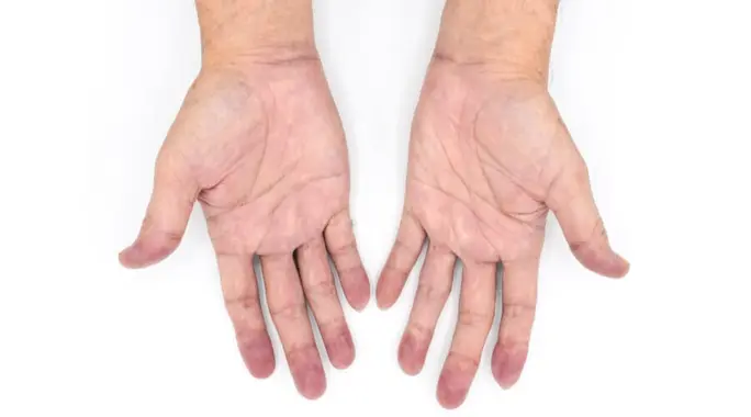 - أعراض مرض التفضض: تغير لون الجلد والأغشية