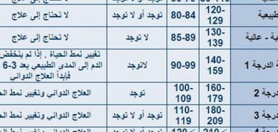 - المرحلة الأولى من ارتفاع ضغط الدم: 159/99 ملم زئبق.