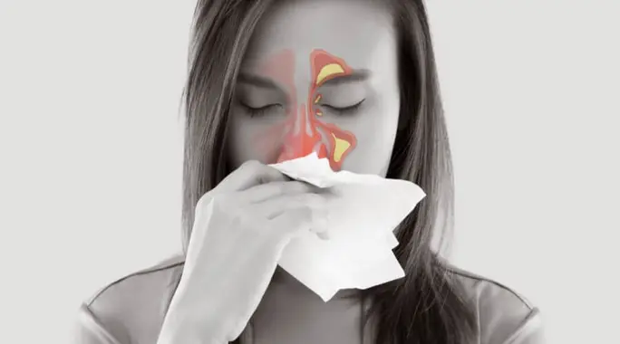- إحساس بالضغط أو الألم في الوجه، خاصة في مناطق الجبهة والأنف والعينين.
