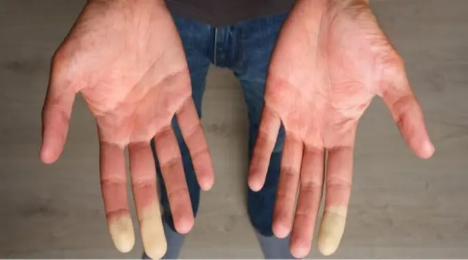 - عودة اللون الأحمر مع الألم: أخيراً، يعود لون الجلد إلى الأحمر الوردي بشكل مفاجئ مع عودة تدفق الدم. خلال هذه المرحلة، يشعر المصاب بتنميل شديد وألم لاذع، وقد تستمر هذه النوبات من بضع دقائق إلى عدة ساعات.
