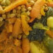 - نقشر الكوسا والبطاطا ونزيل جذور الكوسا. نقطع الكوسا والبطاطا إلى نصفين.