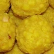 - خذ كمية من خليط كرات العجينة بحجم حبة البيض تقريبًا (أو حسب الحجم المرغوب) وشكلها بين راحتي يديك إلى كرة متماسكة للحصول على حلوى اللدو.