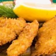 - يُغمّس الدجاج في خليط الطحين حتى يتغطى بالكامل.