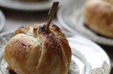4. نشكل العجينة على شكل كرات صغيرة، ونرصها في صينية فرن مدهونة بالزيت ومرشوشة بالقليل من الدقيق.