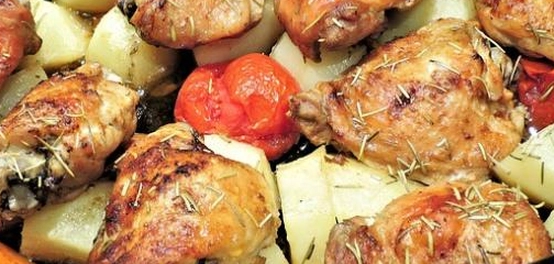 4. نخرج الصينية من الفرن بعد 30-40 دقيقة، أو حتى ينضج الدجاج، ثمّ نقدمها ساخنة.