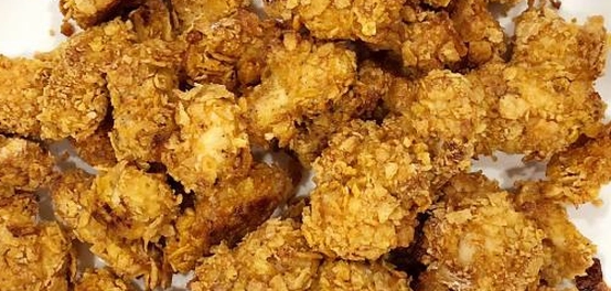 - غطي قطع الدجاج بالطحين، ثم بالبيض، وأخيراً بمزيج الشوفان والبقسماط.