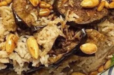 - وضع المغربية في طبق، ووضع الفرِّي المشوي فوقها، ثم تقديمها.