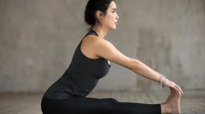 تُعد هذه الوضعية ممتازة لتهدئة الجهاز العصبي وشد أوتار الركبة وتمرين العمود الفقري، مما يقلل من تشنجات البطن والظهر.