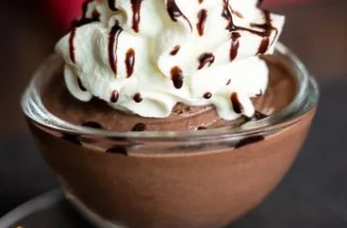 - في وعاء عميق، اخفقي الكريمة السائلة بالمضرب الكهربائي اليدوي حتى تتضاعف وتتماسك.